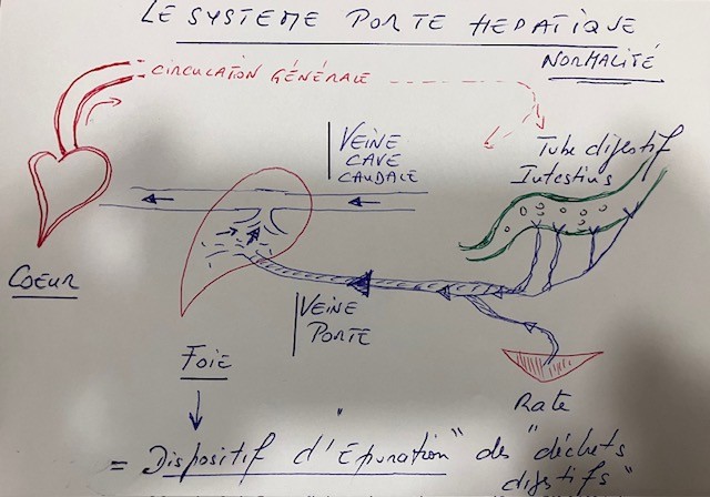 Un système porte est caractérisé par une Veine principale avec un réseau de petits vaisseaux capillaires, responsables d’échanges sanguins, à chacune de ses extrémités. La digestion, au niveau de l’intestin libère des nutriments, et des déchets. Ceux-ci circulent dans la veine porte et arrivent au foie qui fera le tri entre la gestion des déchets et le stockage des nutriments. Le sang retourne ensuite dans la circulation générale.